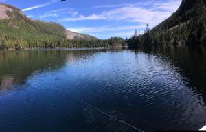 My favorite lake I have fished this past year is about 1.5 hours on the old logging roads. A series of logging roads guide me up to just below the peaks of the mountains. At this point I look up and see two raging waterfalls on the southwest side of the lake. The snow here takes a while to melt so it runs most of the year. It is cooler. Early in the morning it is still. The lake is flat enough that the bottom and fish are visible through most of the lake. As the north westerly rolls in the fish begin rising and come to life with the forest around them.